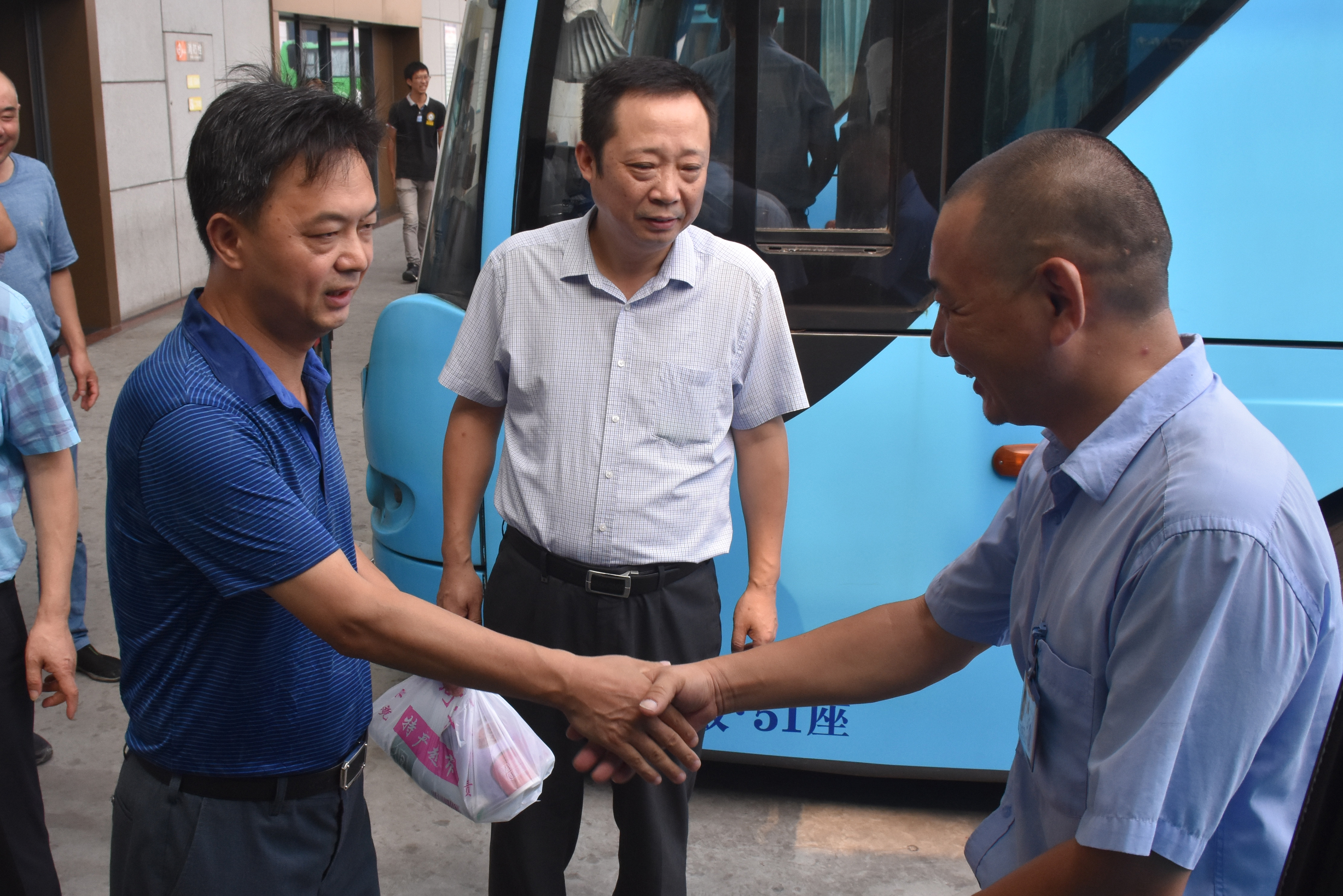 凌董事長(zhǎng)一行對(duì)西部樞紐揚(yáng)州站的候車廳、安檢口、換乘中心等部位進(jìn)行巡視。發(fā)車場(chǎng)上,午后的驕陽(yáng)下,一輛輛大客車整裝待發(fā),發(fā)動(dòng)機(jī)艙里涌出陣陣熱浪,凌董事長(zhǎng)逐一給駕駛員送上防暑降溫用品,并一再叮囑要注意夏季“三防”,確保行車安全。隨后,董事長(zhǎng)一行來(lái)到西部樞紐公交場(chǎng)站進(jìn)行慰問(wèn)。