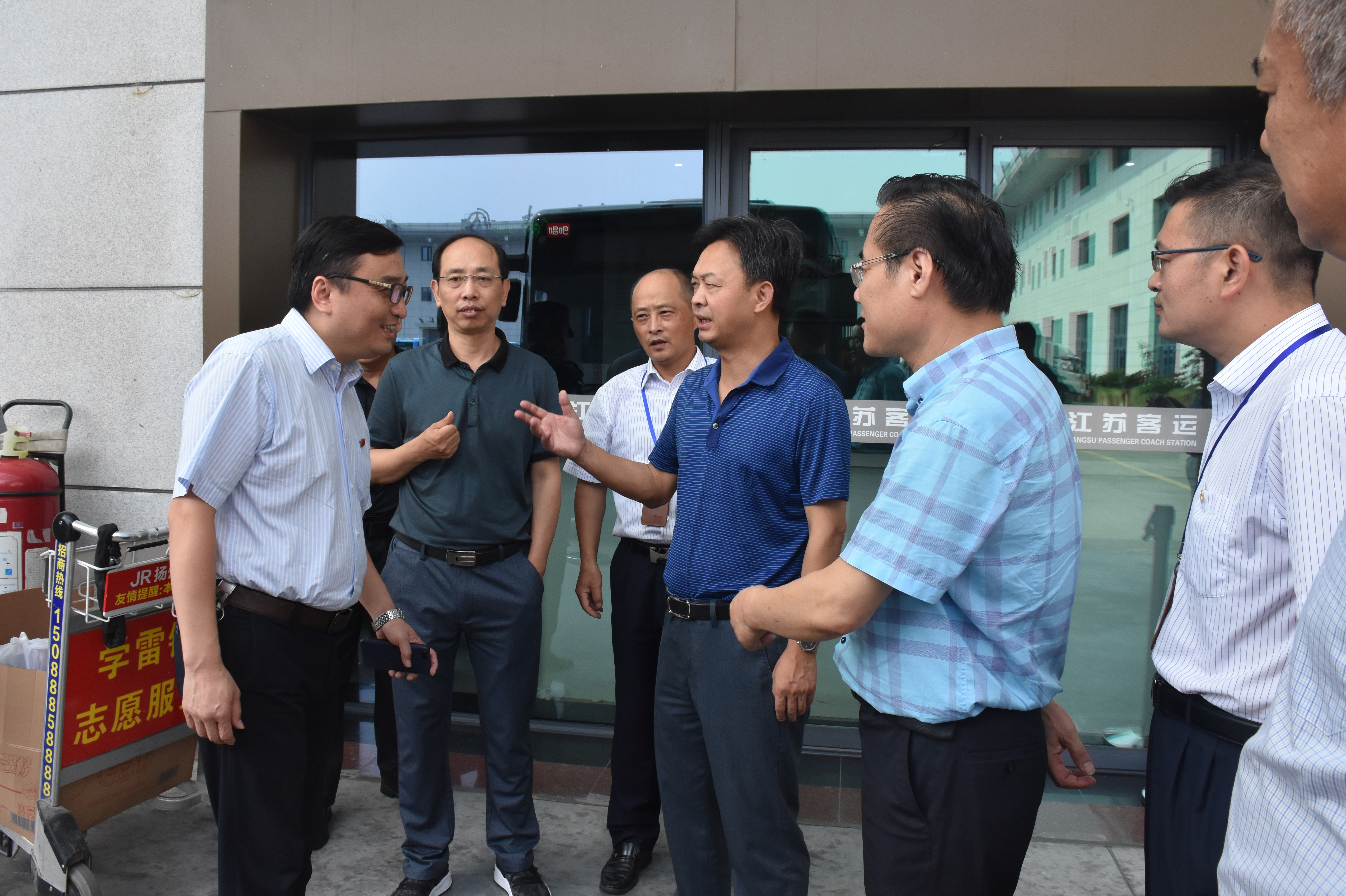 7月25日下午,市交通產(chǎn)業(yè)集團(tuán)董事長(zhǎng)、黨委書(shū)記凌衛(wèi)東帶領(lǐng)的第一檢查組,來(lái)到西部客運(yùn)樞紐檢查安全,并對(duì)一線職工高溫慰問(wèn)。揚(yáng)汽集團(tuán)常務(wù)副總經(jīng)理談衛(wèi)國(guó)、副總經(jīng)理陳家宏陪及車站負(fù)責(zé)人陪同。