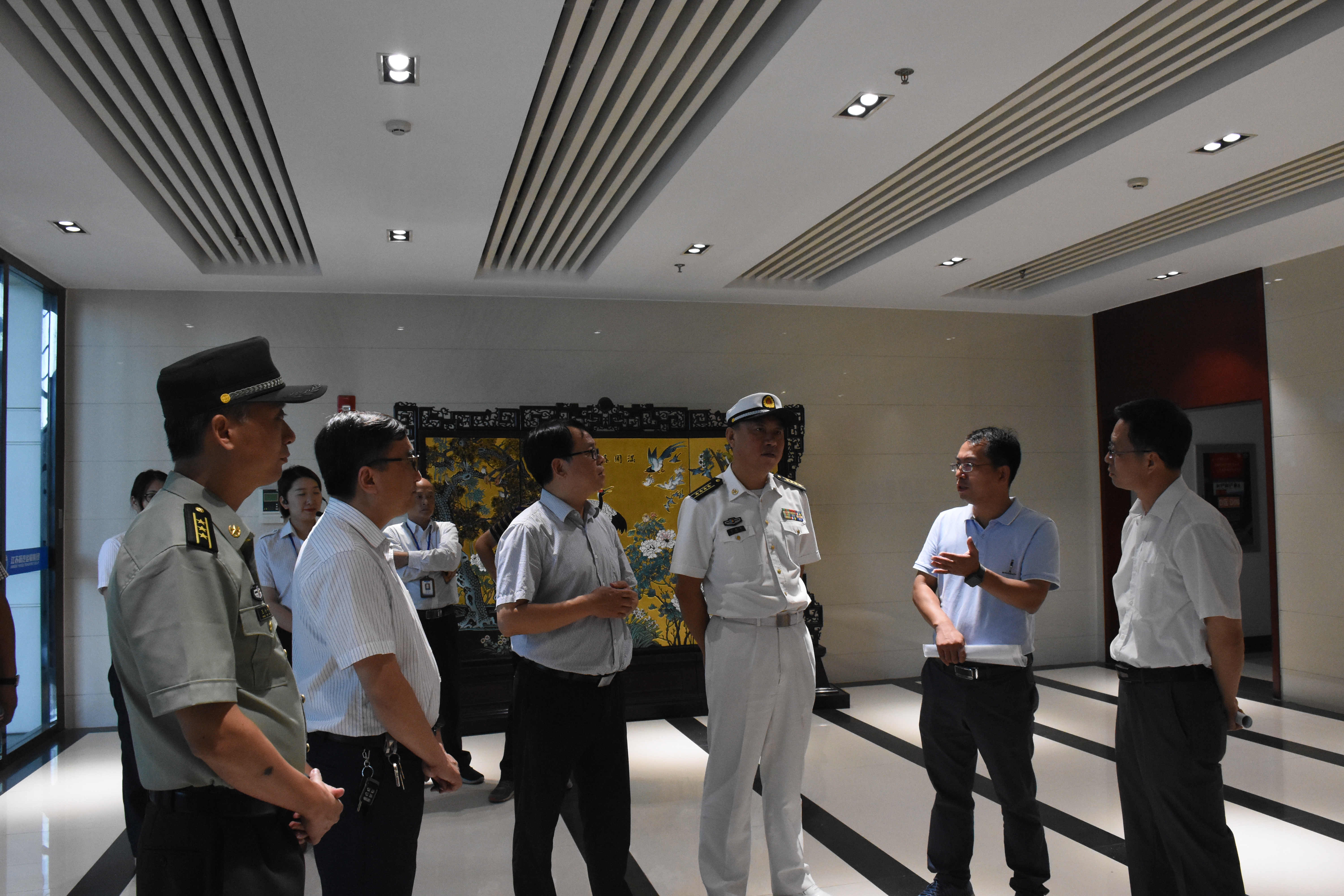 為扎實(shí)推進(jìn)揚(yáng)州市八創(chuàng)“全國(guó)雙擁模范城”工作,2019年9月23日,揚(yáng)州軍分區(qū)司令員劉朝輝、市退役軍人事務(wù)局局長(zhǎng)孫玉金蒞臨揚(yáng)州汽車客運(yùn)站調(diào)研,市交通產(chǎn)業(yè)集團(tuán)副總經(jīng)理、揚(yáng)汽集團(tuán)董事長(zhǎng)、黨委書記龔宇峰,揚(yáng)汽集團(tuán)黨委副書記顧懷,市交通局“八創(chuàng)”工作具體負(fù)責(zé)人印飛等陪同調(diào)研。