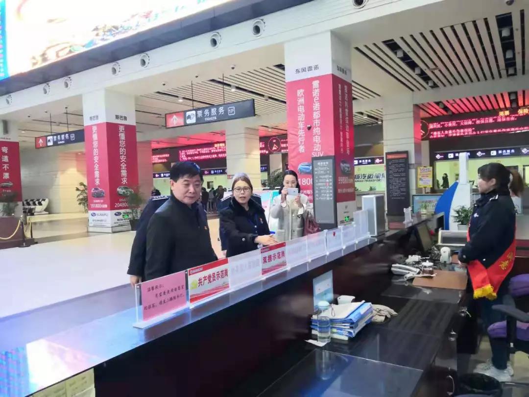 吳忠俊一行先后來(lái)到車站服務(wù)大廳、售票窗口等重點(diǎn)部位,查看了相關(guān)崗位面向服務(wù)對(duì)象、面向職工群眾亮身份、亮承諾、亮標(biāo)準(zhǔn)、亮作為情況。并通過(guò)座談會(huì)形式,與支部黨員、干部代表面對(duì)面交流,了解支部在推動(dòng)中心工作開展、凝心聚力等方面的主要做法,聽取了一線生產(chǎn)經(jīng)營(yíng)中存在的困難問(wèn)題及有關(guān)意見建議。