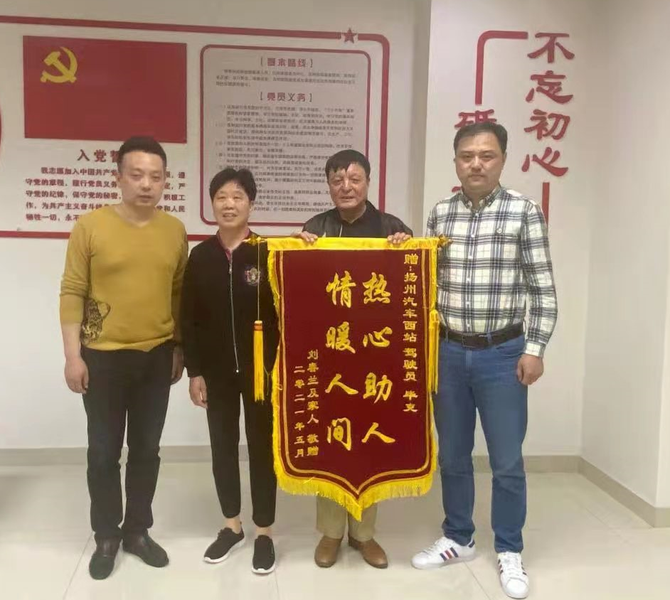 5月6日下午,張先生和劉女士風(fēng)塵仆仆的來(lái)到揚(yáng)汽定制公司,為表達(dá)對(duì)高郵健康定制線畢克師傅的謝意,老人們手捧錦旗以表感謝之情。