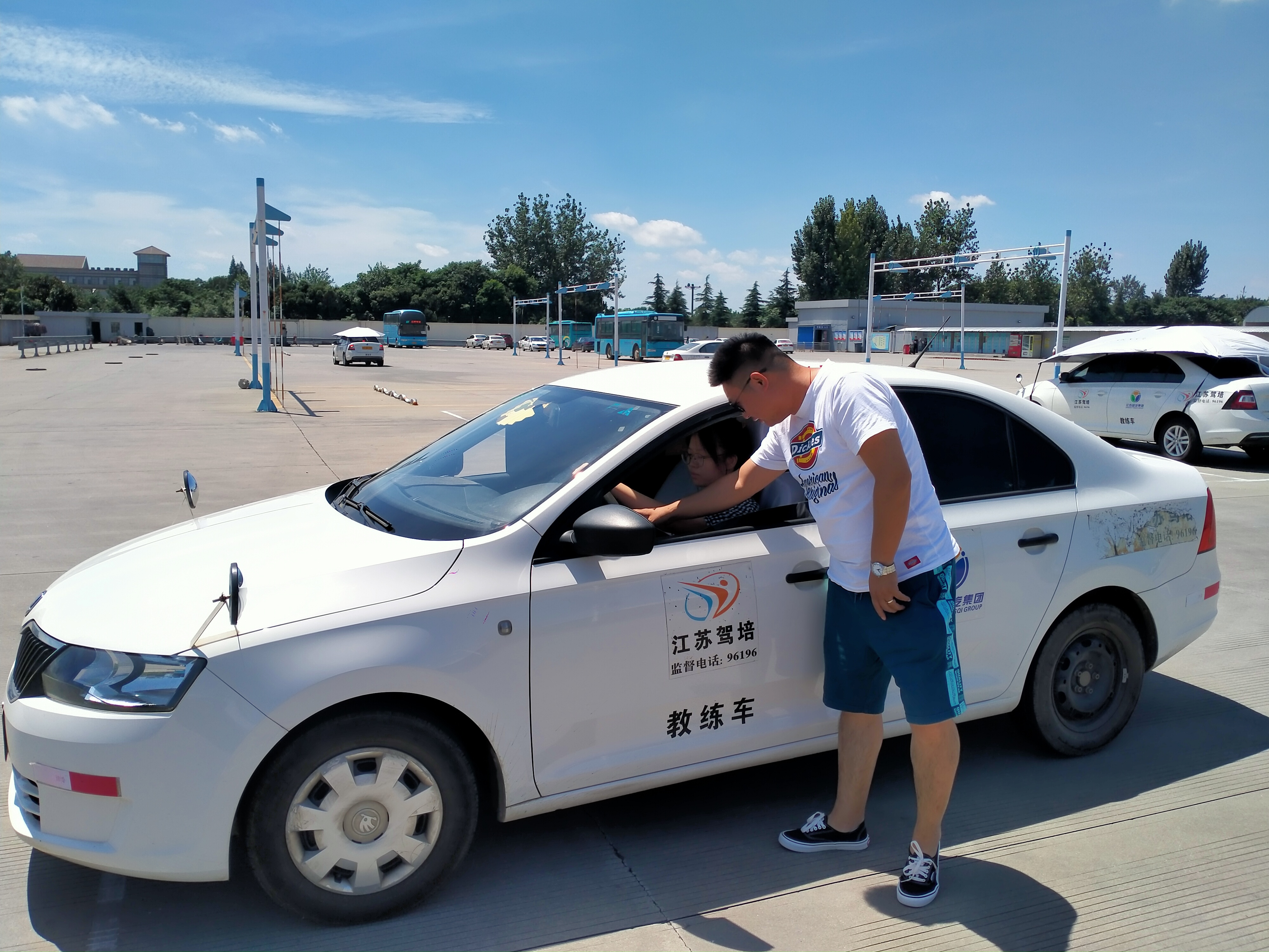 夏天教學(xué)是對教練員意志力、身體的雙重考驗(yàn)。為了保證訓(xùn)練安全,教學(xué)過程中教練員在車外指導(dǎo)學(xué)員從而導(dǎo)致車窗不能關(guān),空調(diào)開著也就失去了效果。這樣的高溫下,沒有人愿意待在車?yán)铮瑢W(xué)員都是練習(xí)完下車找地方乘涼。開車的人都知道,待在炎熱的車廂內(nèi)是多么的煎熬,但是由于職責(zé)所在,我們的教練員都必須時(shí)刻保持高度警惕,寸步不離地堅(jiān)守在自己的崗位上。