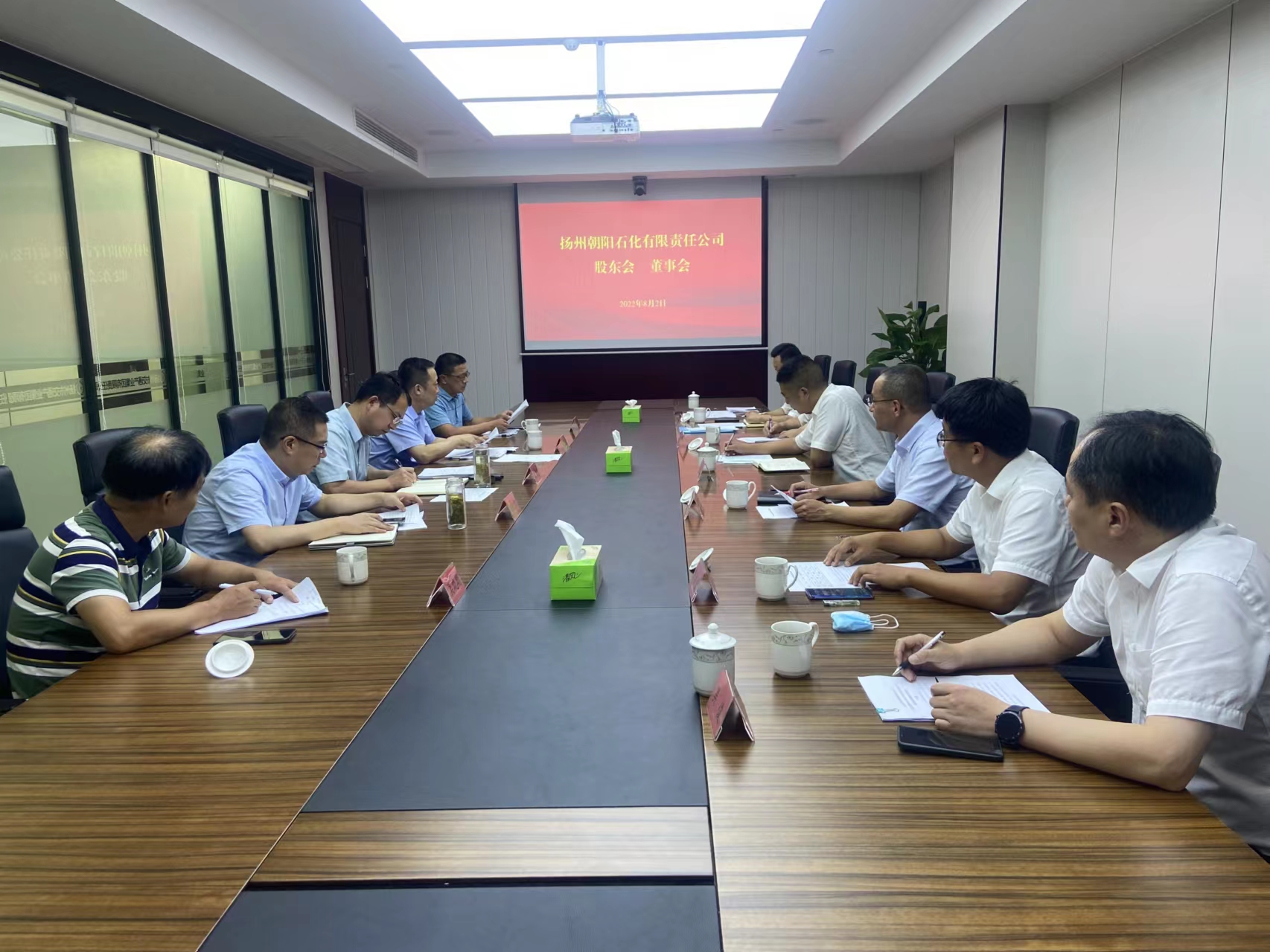 8月2日,揚州朝陽石化有限責(zé)任公司及其股東單位中石化揚州分公司、江蘇揚汽集團(tuán)有關(guān)人員在交通產(chǎn)業(yè)集團(tuán)313會議室召開了揚州朝陽石化有限責(zé)任公司股東會、董事會。