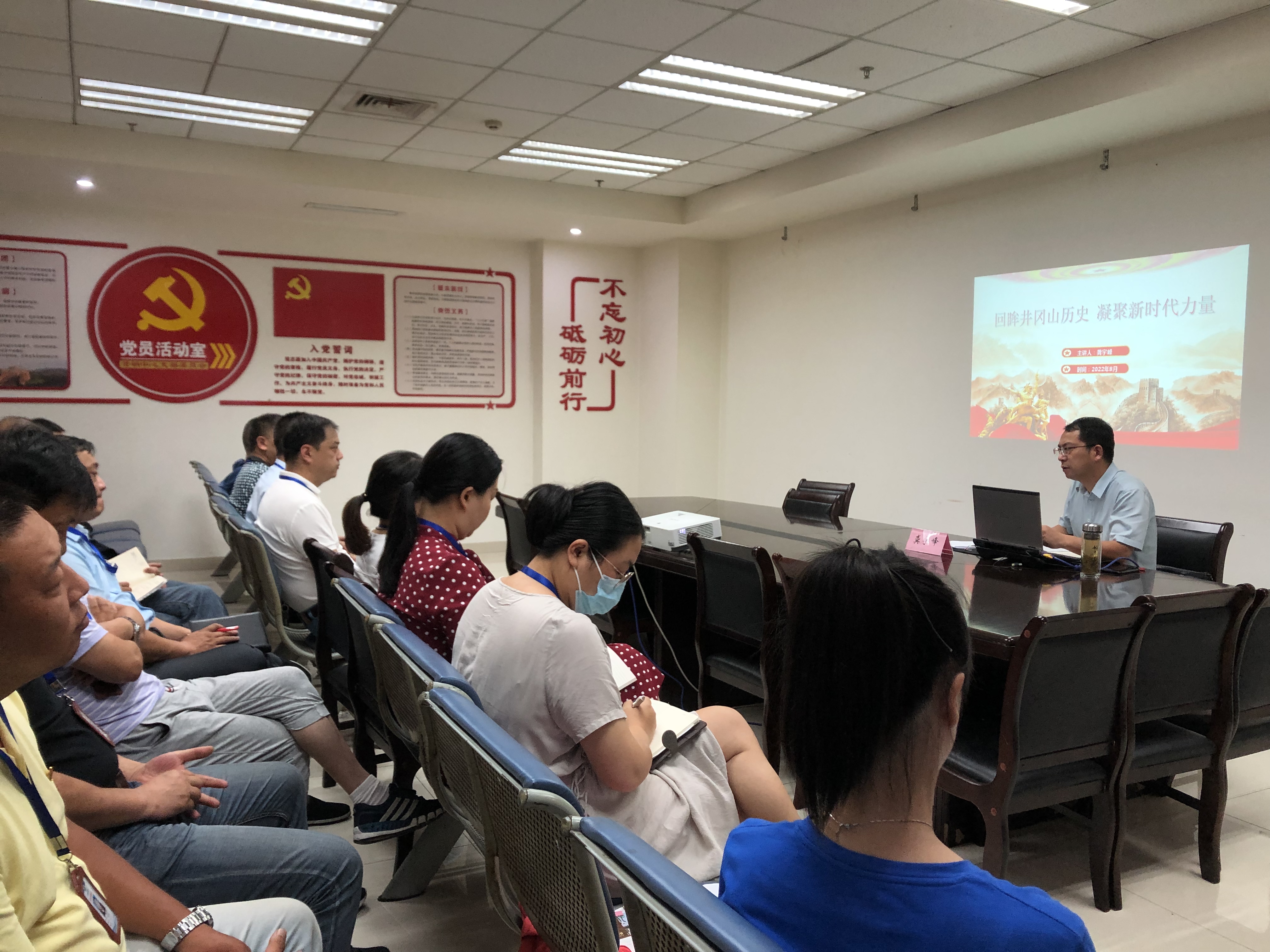 活動(dòng)中,龔宇峰與全體黨員共同重溫了入黨誓詞,以《回眸井岡山歷史 凝聚新時(shí)代力量》為題,從井岡山的歷史、內(nèi)涵和時(shí)代價(jià)值等方面帶給大家一堂生動(dòng)的主題黨課。在場(chǎng)黨員同志們對(duì)“第一個(gè)農(nóng)村革命根據(jù)地建立”、“ 三灣改編”、“星星之火可以燎原”等黨史有了更深入的理解。