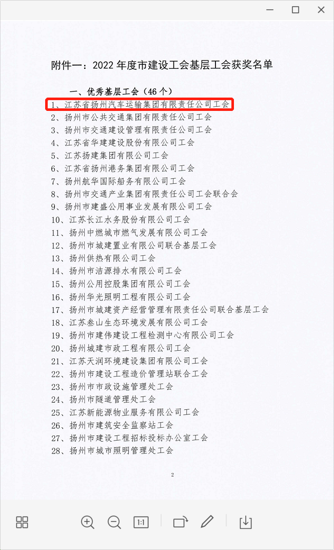 揚汽集團工會榮獲揚州建設產(chǎn)業(yè)工會“優(yōu)秀基層工會”通報表彰
