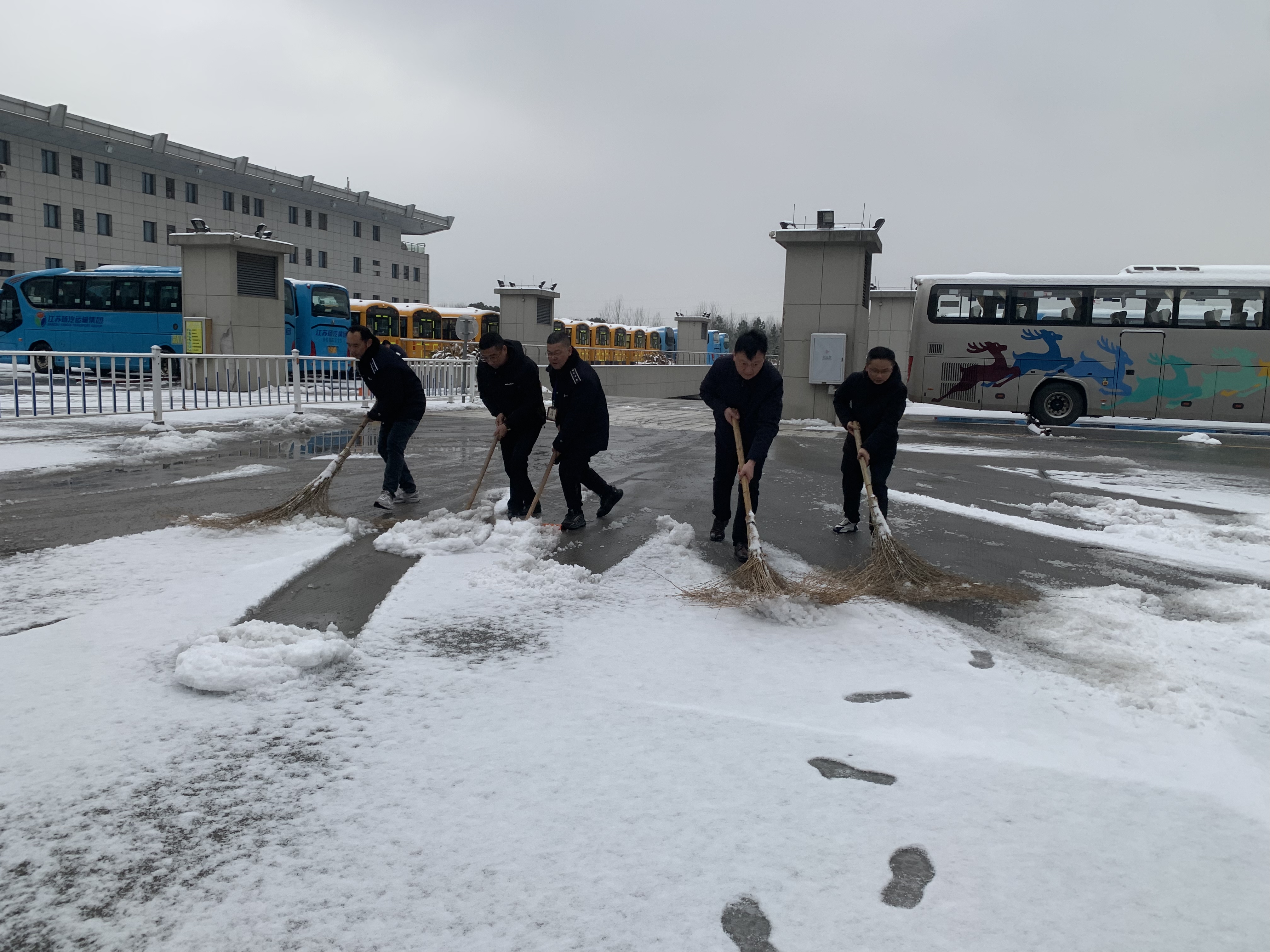 破冰除雪,安全出行。揚汽集團(tuán)總經(jīng)理劉俊帶領(lǐng)應(yīng)急值班值守和安管人員開展雪地清掃工作,進(jìn)一步落實落細(xì)各項應(yīng)急保障措施,現(xiàn)場叮囑相關(guān)負(fù)責(zé)人要時刻關(guān)注天氣情況和道路狀況,科學(xué)合理安排班次,確保旅客出行需求。