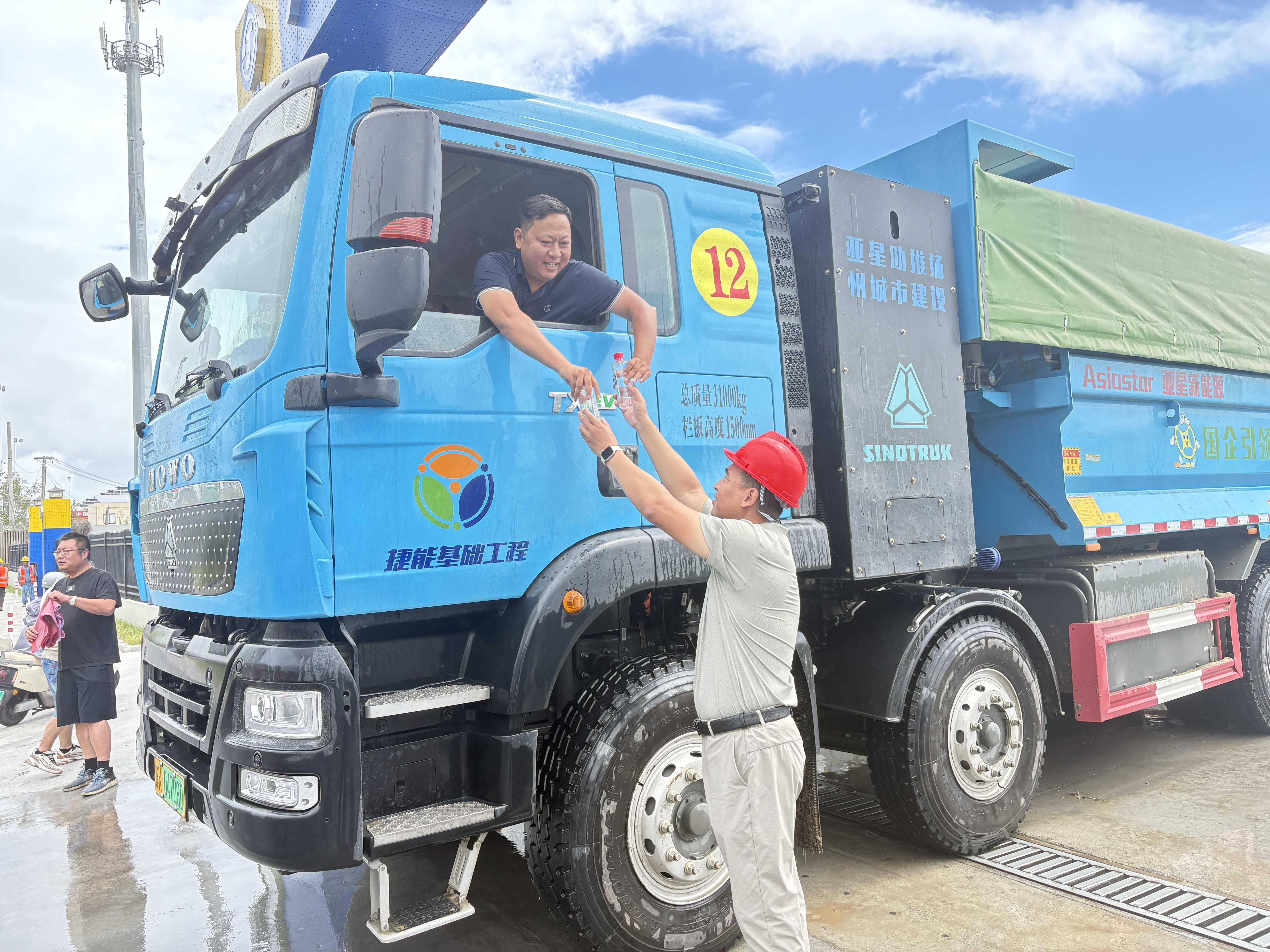 連日來(lái),揚(yáng)州持續(xù)高溫。面對(duì)酷暑考驗(yàn),揚(yáng)州捷能基礎(chǔ)工程有限公司的渣土車(chē)運(yùn)輸駕駛員們?nèi)詧?jiān)守施工一線,全力保障生產(chǎn)。為切實(shí)維護(hù)一線駕駛員的身心健康與作業(yè)安全,公司聯(lián)合新能源車(chē)輛廠家組成慰問(wèn)小組,開(kāi)展了“送清涼”活動(dòng),為在高溫下辛勤作業(yè)的駕駛員們送去關(guān)懷與清涼。