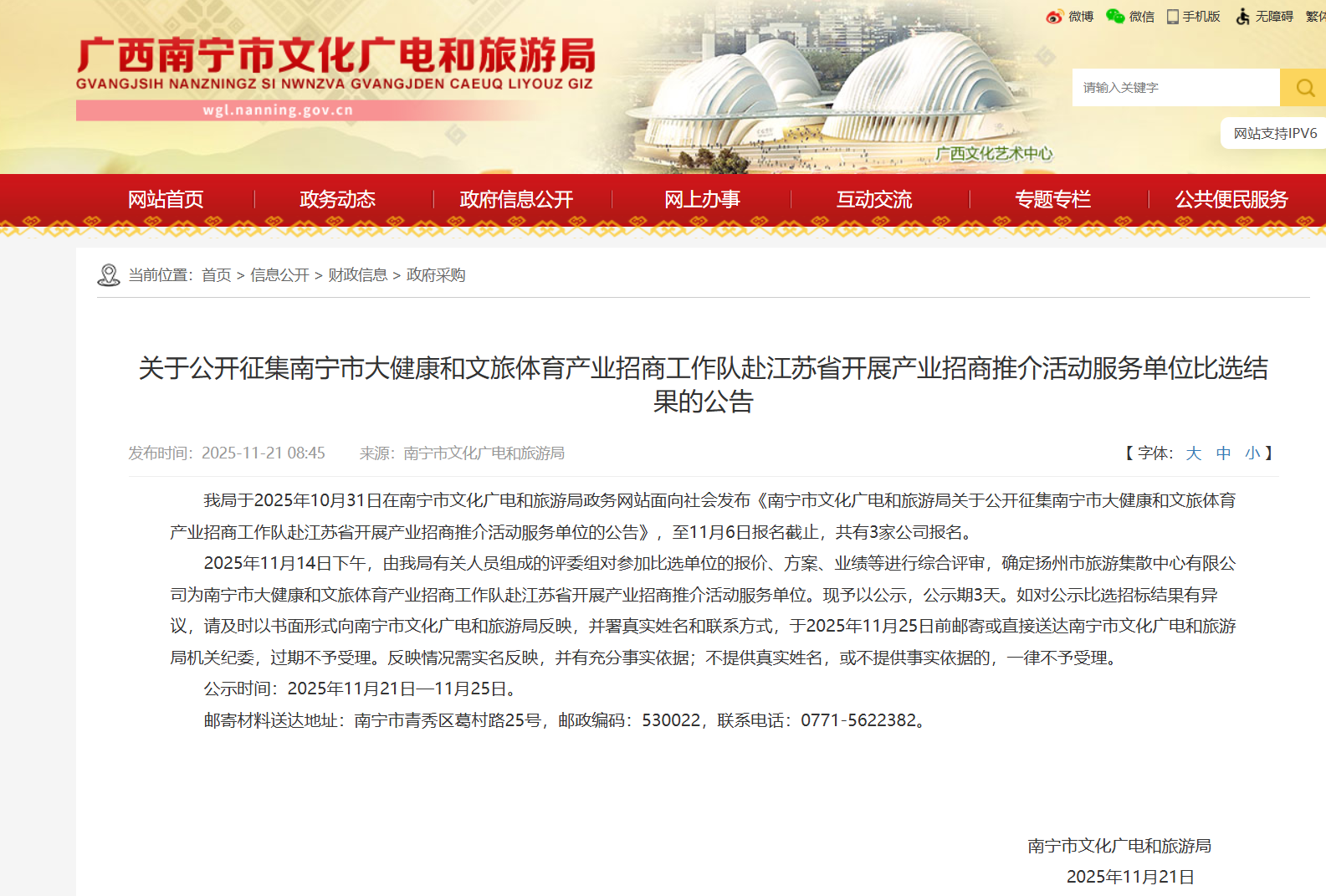 揚(yáng)州旅游集散中心成功中標(biāo)南寧文旅招商江蘇推介活動(dòng)服務(wù)項(xiàng)目